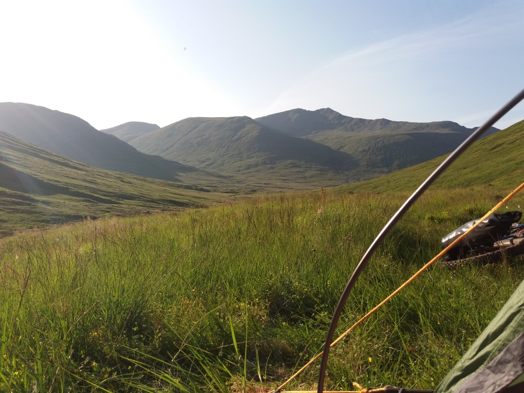 This valley is one of the most stunning places I’ve spent a night. The ground was actually boggy and infested with midges which want to bite you and drink your blood, so I had to flee into the tent and zip it up instead of watching the sunset outside, but the experience of coping with such things is part of the satisfaction.