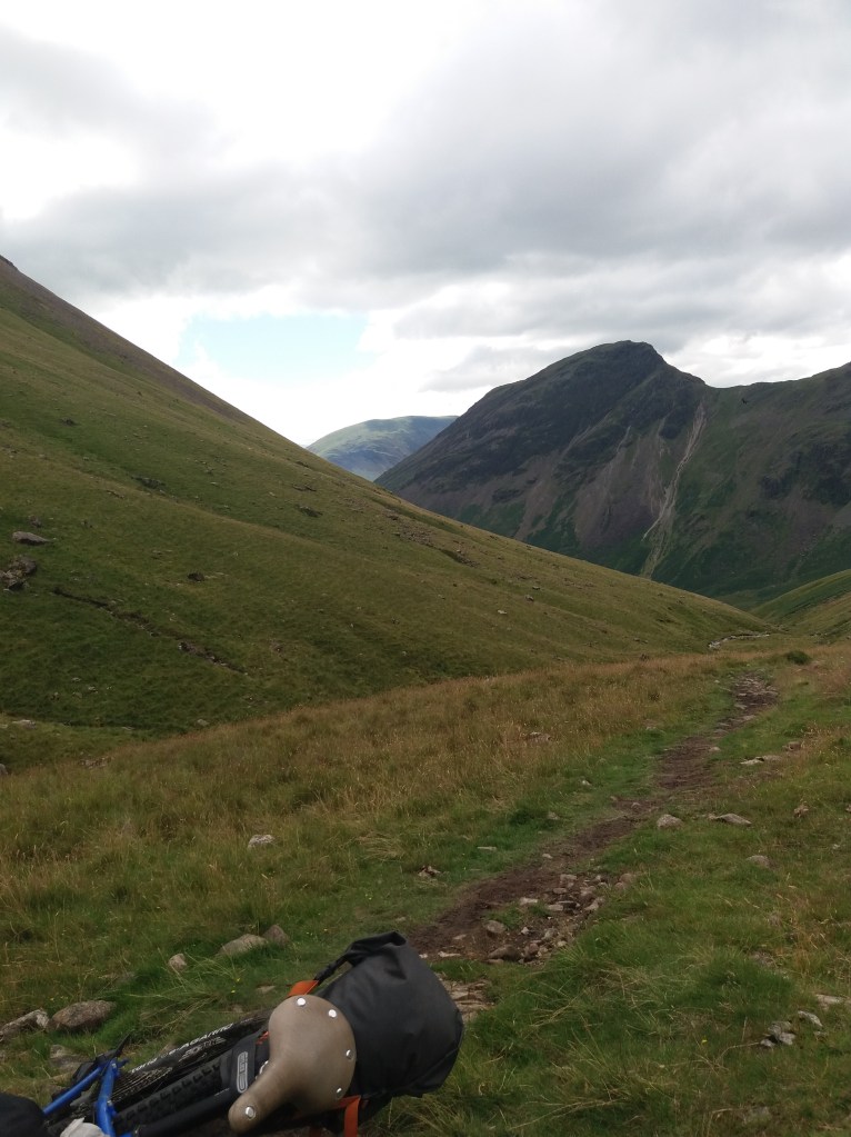 About halfway up Black Sail Pass the path became so steep that even pushing was too hard and I had to unload my camping gear and carry it up the slope then go back down, grab my bike and carry it up in turn. While this was happening I learned from passing hikers that Tom Cruise was filming in Buttermere, over the next ridge but one.