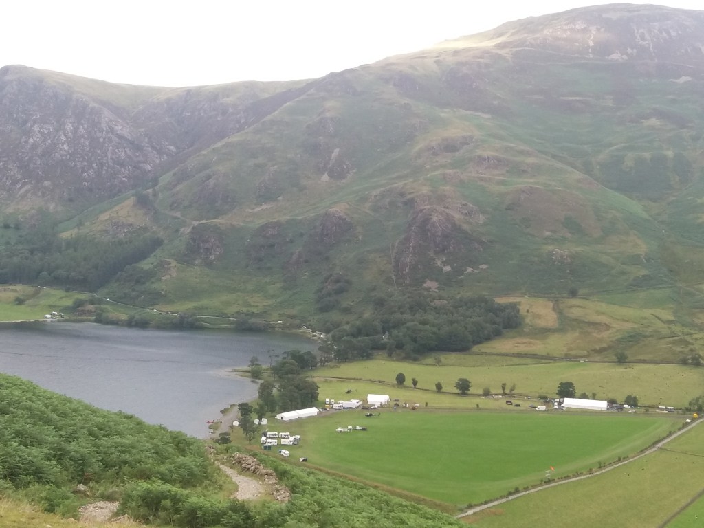 Crawly bumlick, as we used to say in primary school. I didn’t meet Tom Cruise, whose name could be heard all over Buttermere for the rest of that day like a whisper on the wind. I did get some pics of the film crew’s helicopters (the tiny white things in the left-centre of the field) which were taking off from time to time to do something stunty over the lake. They had two white choppers, one of which might have been the other’s stand-in, and a black or brown one which I suppose was for fishing stunt performers out of the water, if need be.