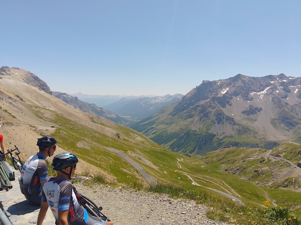 We came out on the road a thousand feet or so below the Col and rode the rest of the way on tarmac while being overtaken by road cyclists on much lighter bikes. At the top, which is nearly 9,000 feet up, you’re surrounded by peaks and ridges stretching to the horizon in every direction and the feeling of attainment is exhilarating. No Tom Cruise in sight, it has to be said, but better than that: a blue-graded (easy) mountain bike track, which enabled us to freewheel all the way down to the valley. Not a superstar stunt, true: just a normal and fantastic adventure, lucky us.